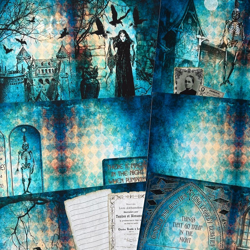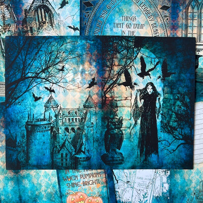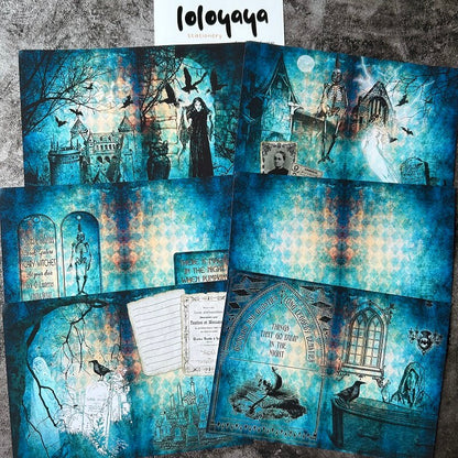 Spooky Night Material Paperis used for writing, note taking, free cutting and also for decorating scrapbooks, art journals, cards, gift bags and DIY other paper crafts. Make unique handmade items, add a mysterious charm to your creations, release your imagination to make this material paper part of your unique story.