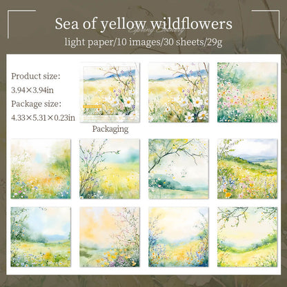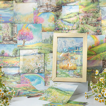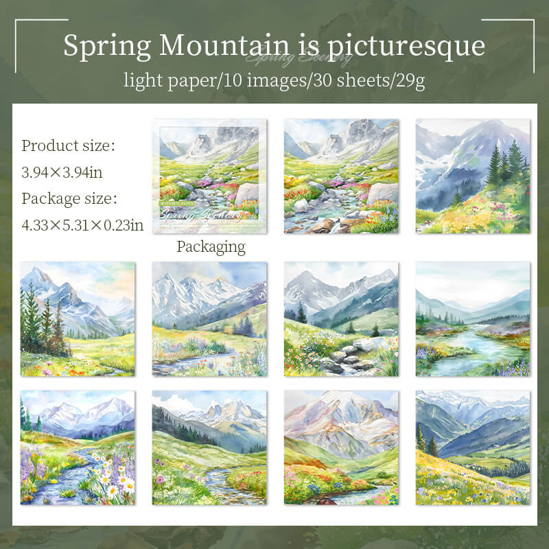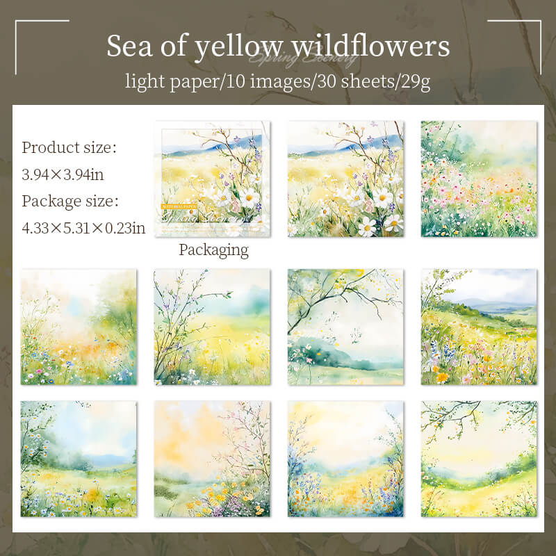 Spring Scenery Paper is a softly colored paper that depicts a field of blossoming flowers, emerald green grass, a clear stream, and a blue sky. The paper is dotted with blooming cherry blossoms, spring flowers and tender green leaves, and the sunlight pours through the treetops, full of vitality and warmth, as if you can feel the spring breeze and the revival of the earth.