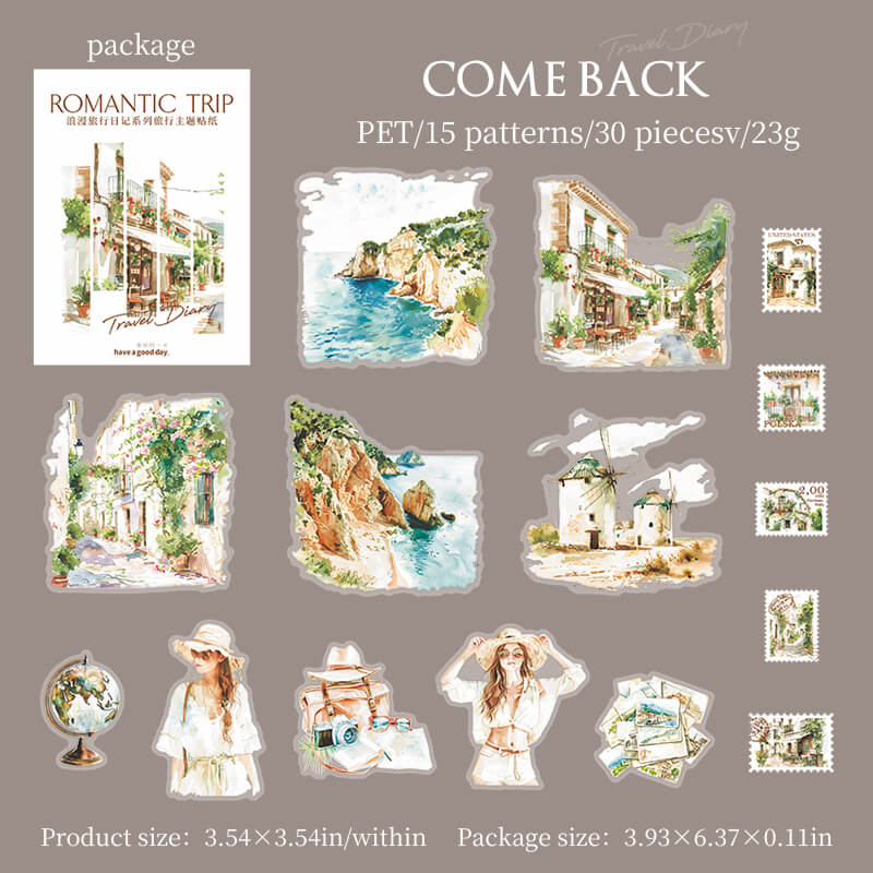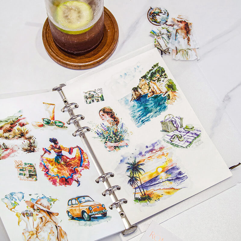 Travel Diary Series Stickers are used to decorate scrapbooks, art journals, cards, agenda books and other paper crafts, can also be used to decorate computers, mobile phones, they can add a unique style and personality to the items, is the items more attractive and personality, add colour to life!