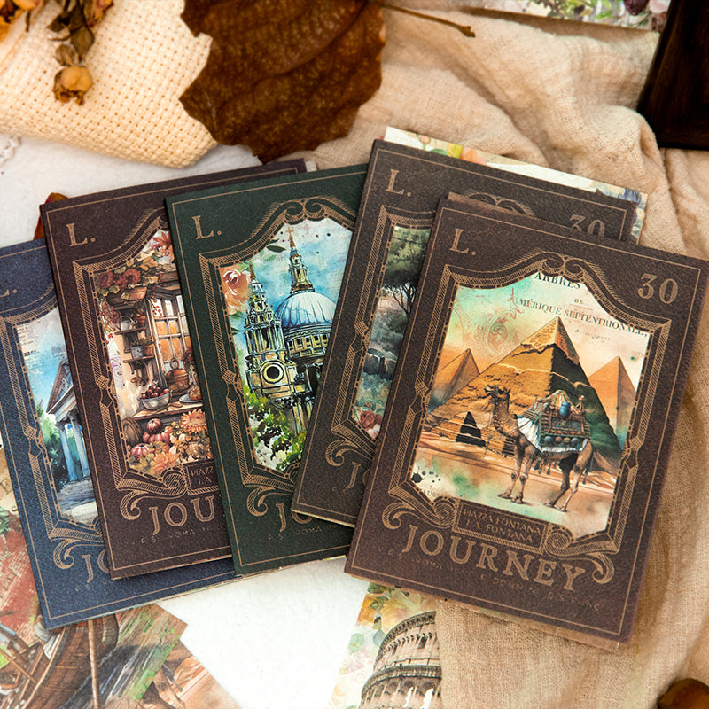 This travel journal material paper has 5 different elements, each with 30 sheets and 10 patterns; The background paper is the most basic accessory for scrapbook album scrapbooking, it is a carrier for photos and other decorations, it can also be used for handmade greeting cards, handbook decorations, DIY origami, packaging, framed gift boxes, albums and so on.