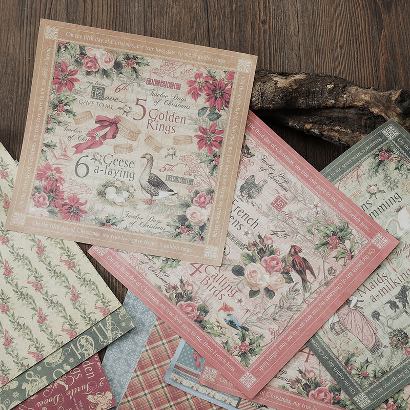 These Christmas holiday theme decorative papers are perfect for scrapbooking, journaling, card making, gift package, and more paper crafts.These vintage papers are perfect for scrapbooks, card making, art journals, gift packaging, and more paper crafts.