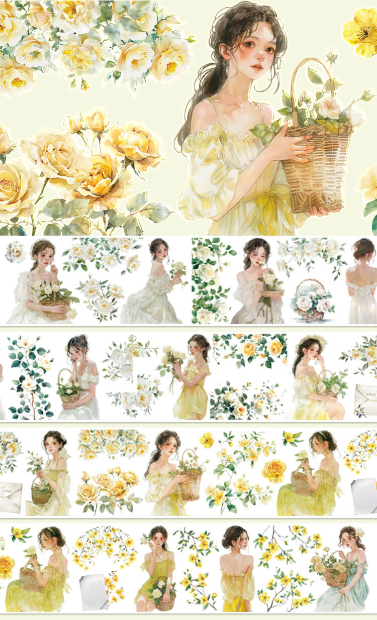 Yellow Flower Girl Tape can be freely cut and stacked with other stickers and material papers to make the layers more rich. Not only for handbook collage, but also can be used for album making, gift wrapping and other DIY decorations, add some unique decorations to the work and make it more beautiful